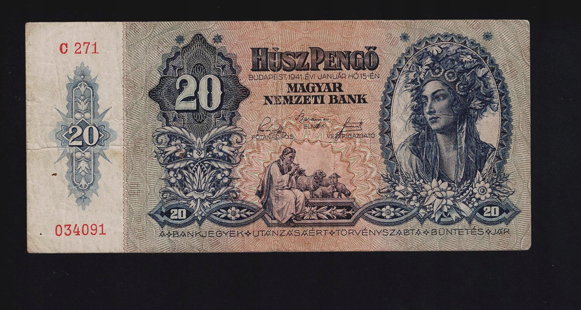 БАНКНОТА УГОРЩИНИ -- 20 пенго -- 1941 р