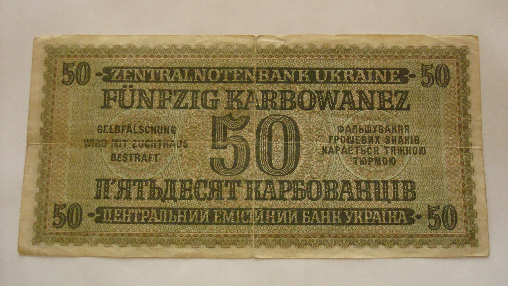 банкнота УКРАЇНА номіналом 50 карбованців 1942 року