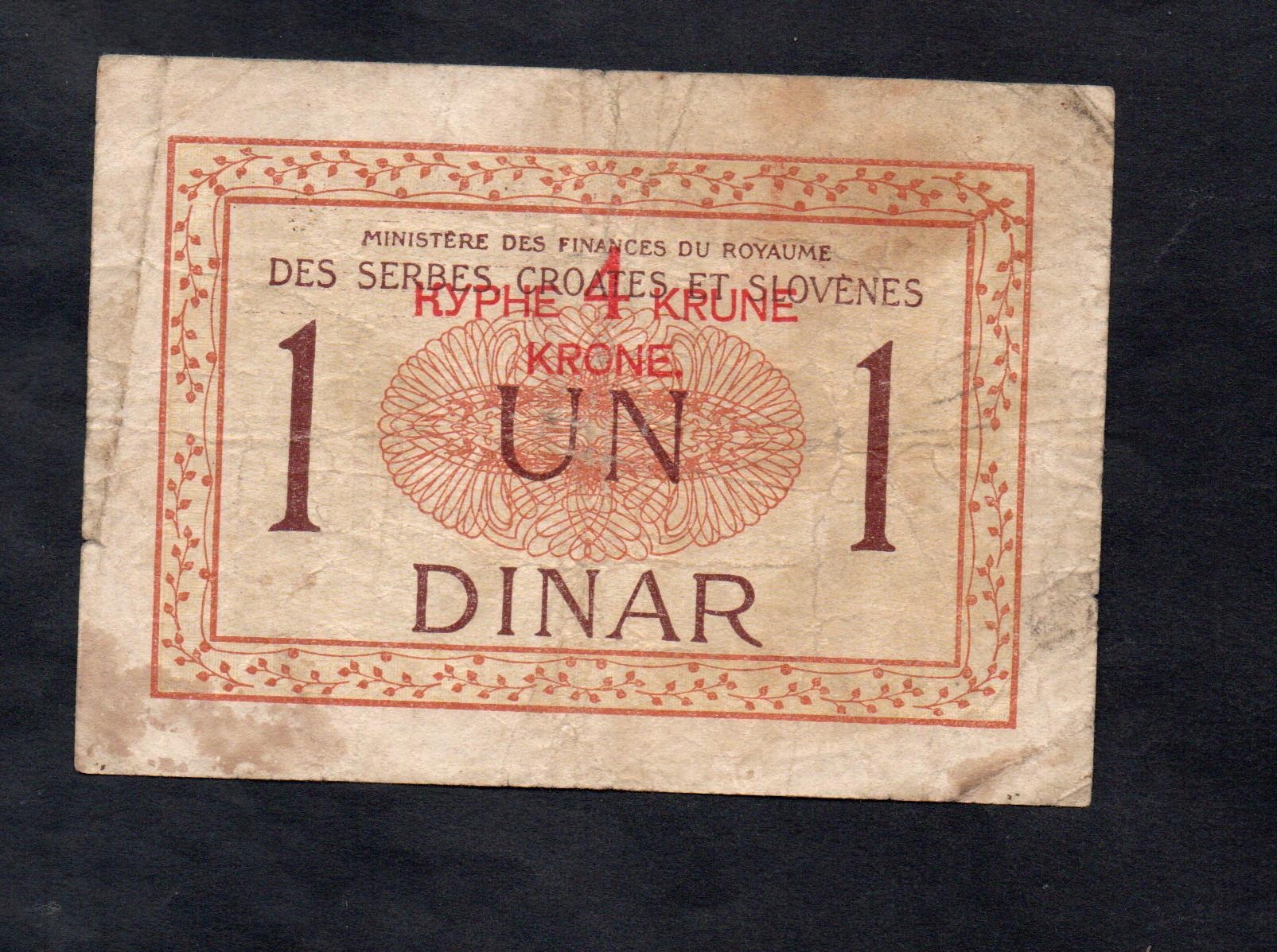 БАНКНОТА ЮГОСЛАВІЇ -- 1 ДИНАР / 4 КРОНИ -- 1919 р.