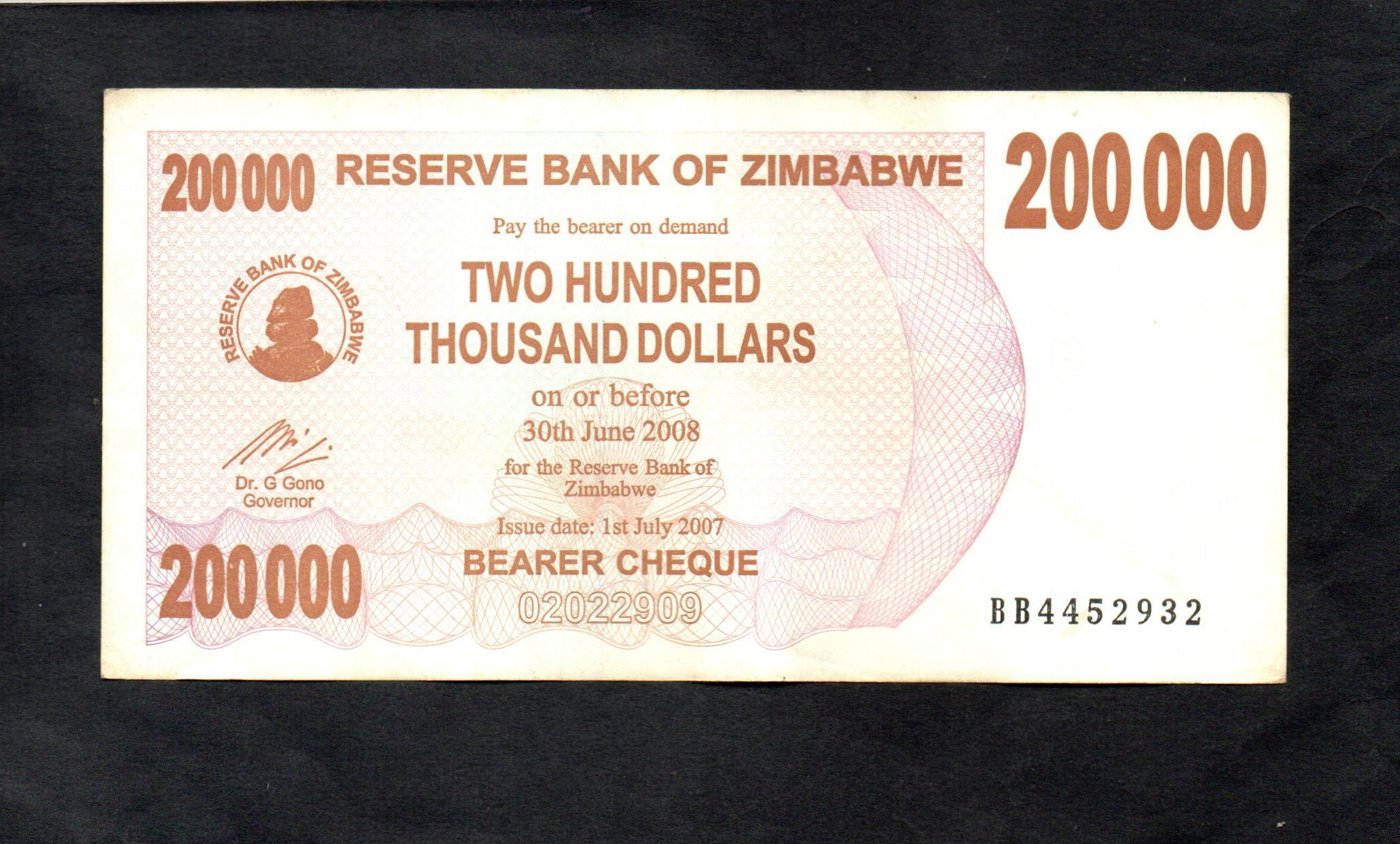БАНКНОТА ЗІМБАБВЕ -- 200 000 доларів -- 2007