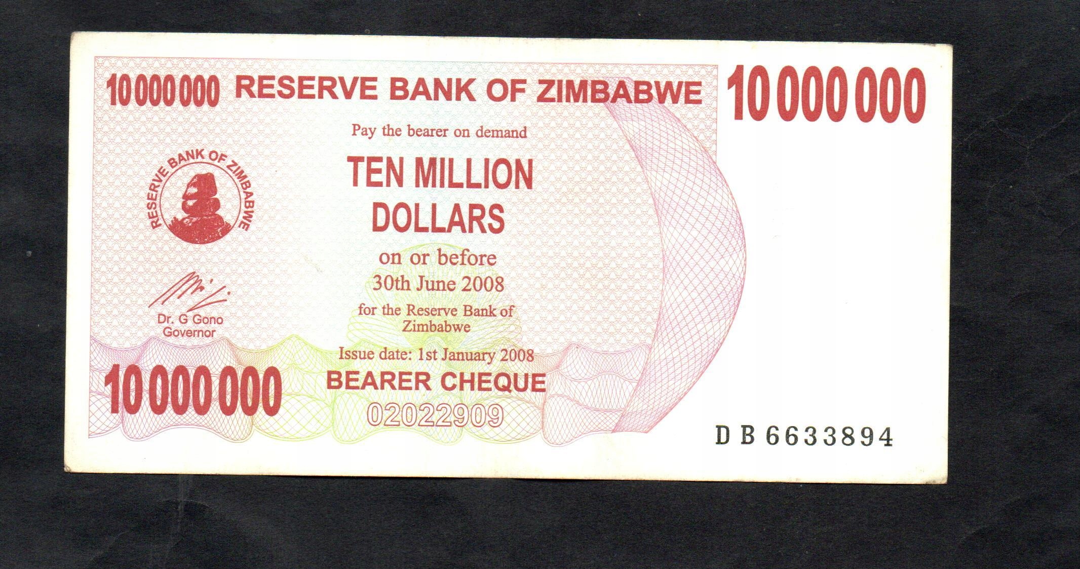 БАНКНОТА ЗІМБАБВЕ - 10 000 000 доларів США - 2008 р.