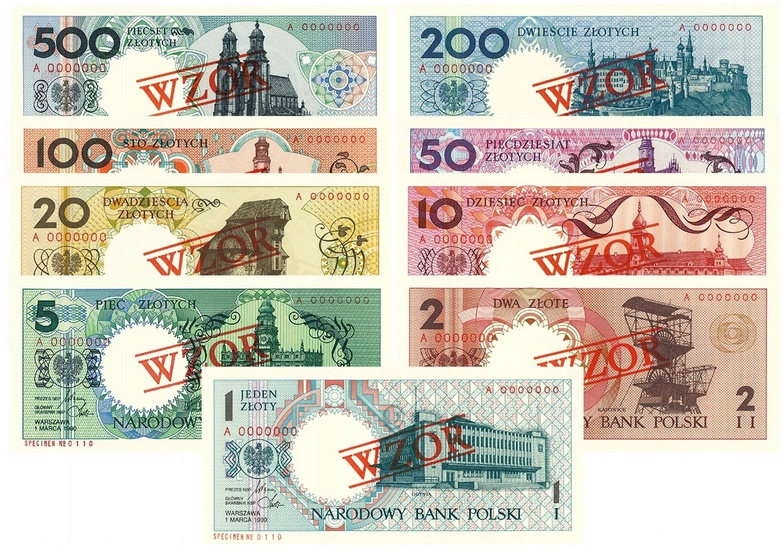 БАНКНОТИ МІСТА ПОЛЬСЬКІ НЕОБІГОВІ, 9 БАНКНОТ - ВІЗЕРУНОК - КОПІЇ - L21