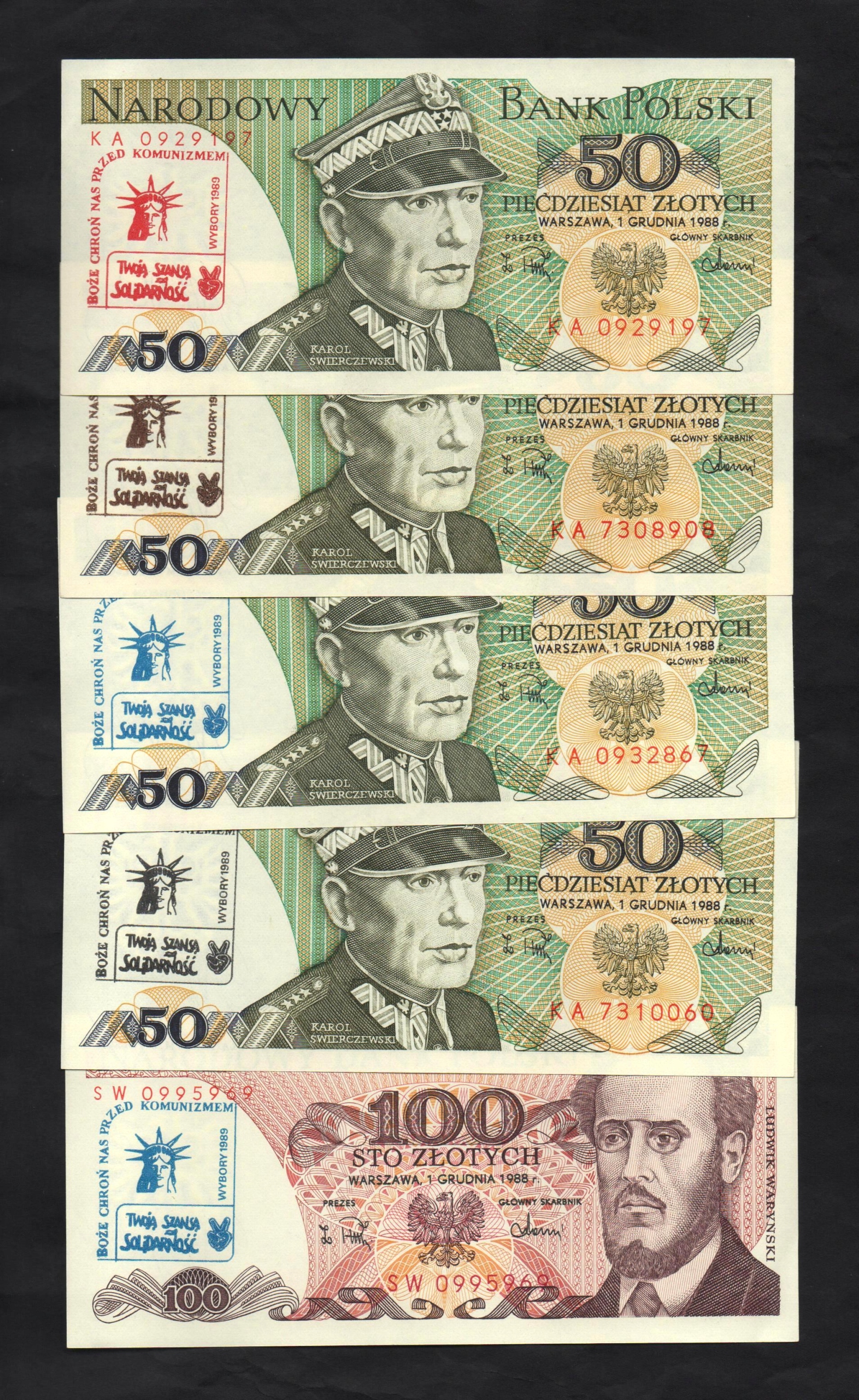 Банкноти PRL з друком солідарності, 5 штук