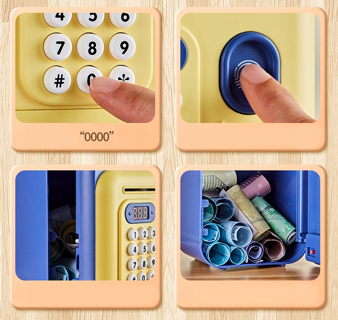 Завдяки сучасним функціям, таким як лебідка для купюр або відкриття сейфа за відбитком пальця, діти можуть відчути себе власниками справжнього сейфа.