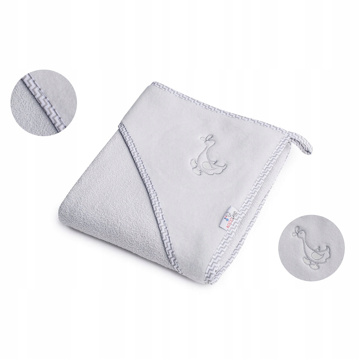 Чохол для плавання дарує приємне відчуття тепла після купання, прикрашений високоякісною вишивкою на капюшоні. Капюшон дозволяє покрити вологу голову малюка.