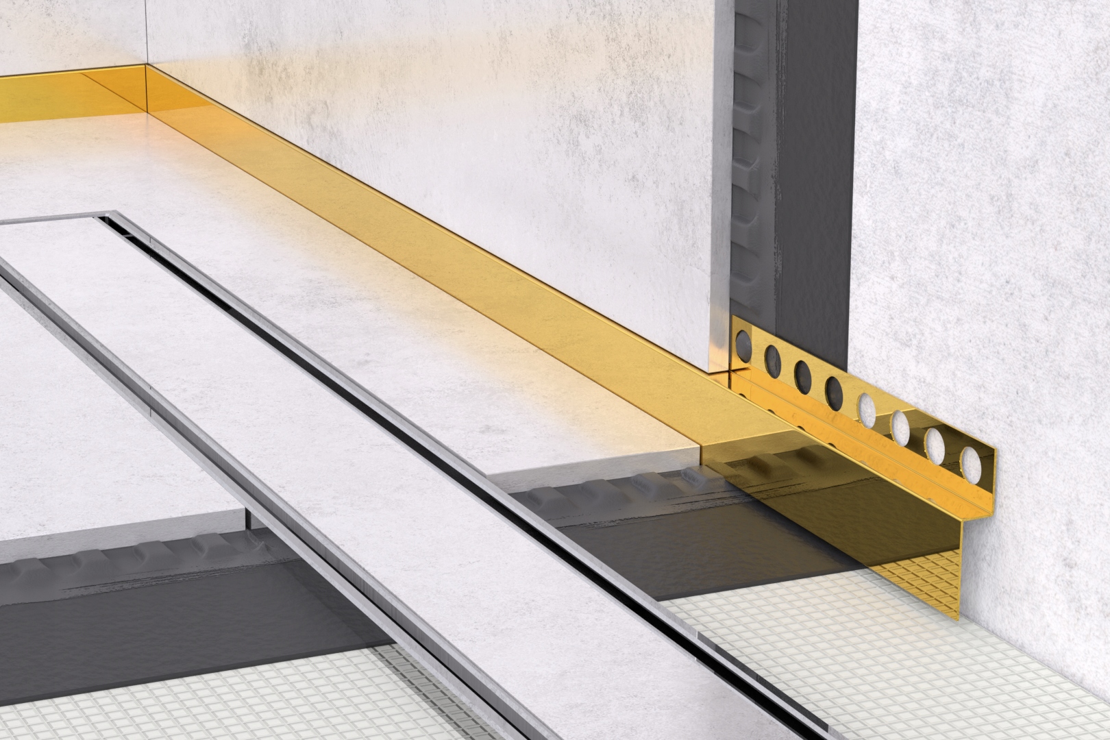 - Передня смуга маскує непривабливі кінці плитки, захищає від гострих країв і запобігає проникненню води під плиткою.