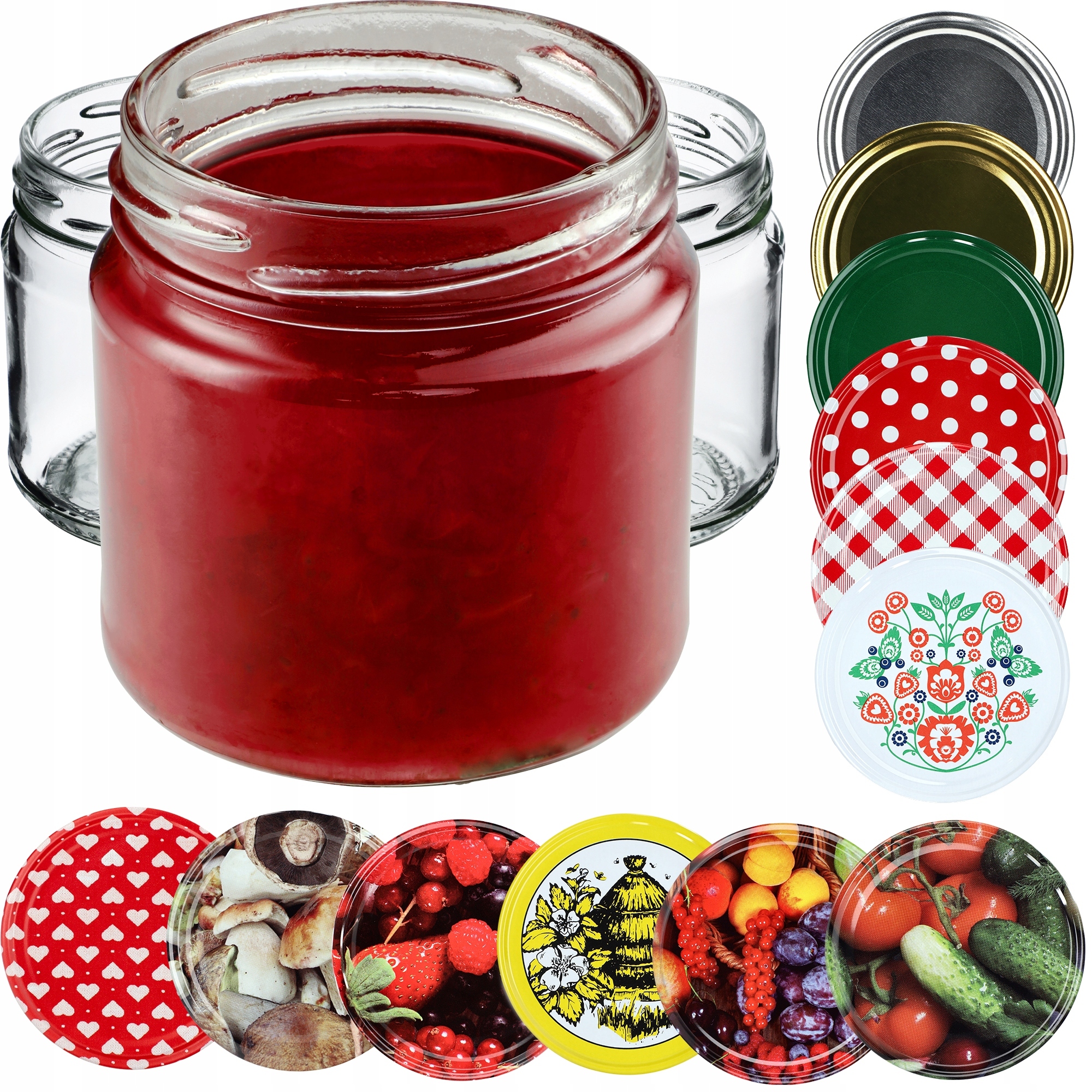 ✅ РІЗНЕ - банки з кришками ємністю 200 мл доступні в чотирьох упаковках: 10, 20, 50 і 100 штук. У нашій пропозиції також є баночки зі спеціальними одноколірними та візерунковими кришками.