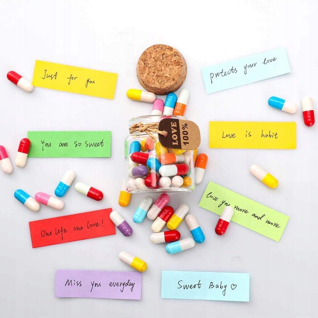 - Щасливе повідомлення в пляшці - маленька таємниця в кожній капсулі, збережіть своє життя та бажання міцними, щасливими чи стурбованими, сумуючими та турботливими, своєю любов’ю та своїм життям. Маленькі таблетки кохання сповнені нескінченних глибоких почуттів.