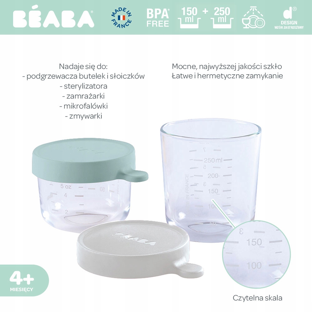 AIRY GREEN LIGHT MIST Набір скляних харчових баночок 2 шт 150мл та 250мл Beaba