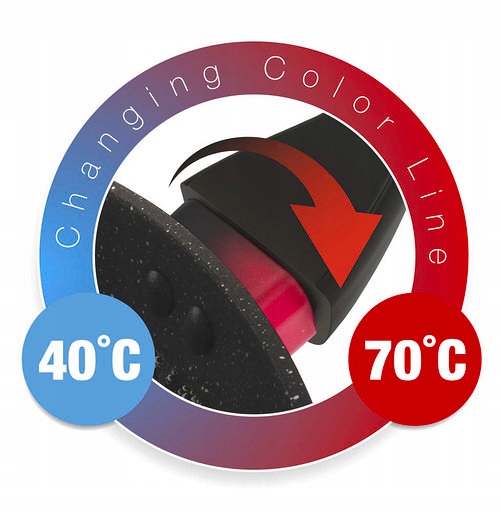 Сковорода LUMIA line має термозахисне кільце THERMO GUARD - індикатор ступеня нагріву, який змінює колір від чорного до червоного, поступово вказуючи момент нагріву сковороди. Колір повністю червоніє при 70 градусах, коли сковорода готова до смаження.