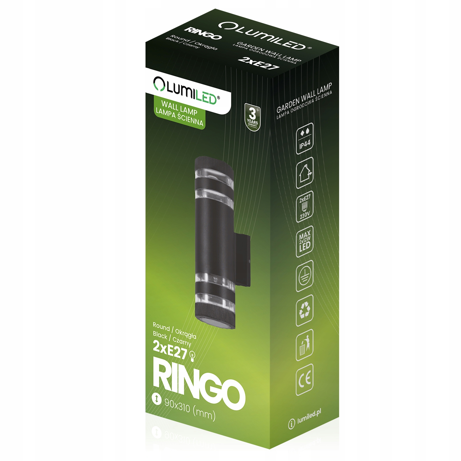 Садовий настінний світильник, чорний настінний світильник, серія RINGO від LUMILED