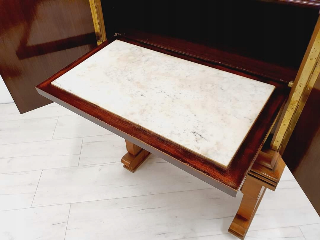 Бар/бар арт-деко, Чехословаччина, 1930-ті роки. Дуже цікава форма у вигляді шафи. Інтер’єр облицьований палісандром, на відкидній панелі є кам’яна стільниця. Підпис на ключі (на жаль, поки що не вдалося ідентифікувати дизайнера).