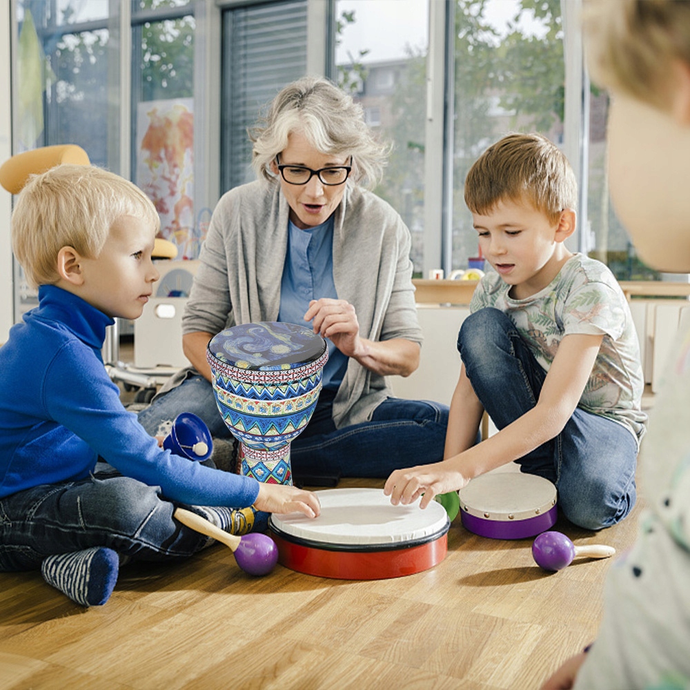 Африканський ручний барабан 8-дюймовий портативний ударний інструмент джембе з барвистими художніми візерунками для дітей, легкий бубон, музичні інструменти раннього просвітництва