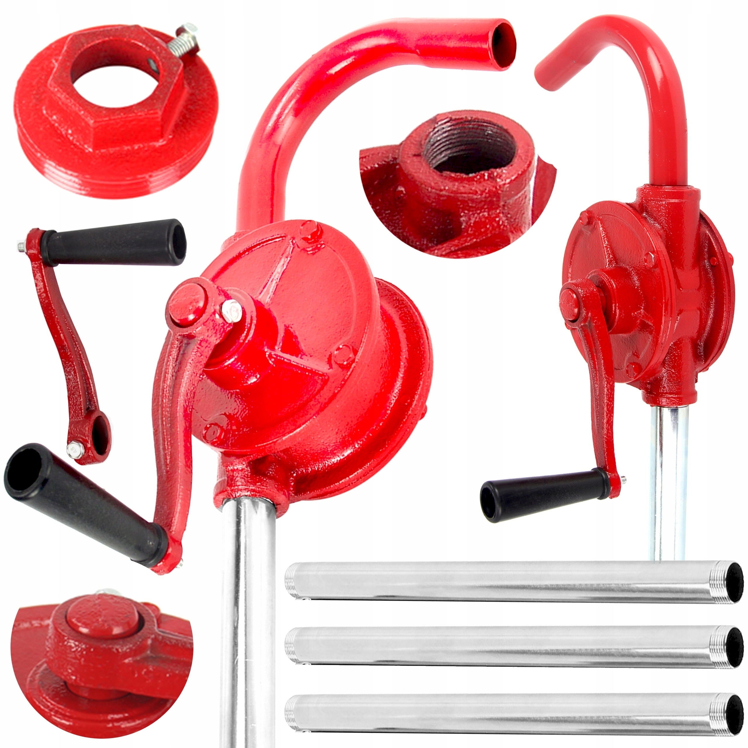 Незамінний для перекачування олії та палива зі стандартних бочок завдяки монтажному кільцю, що входить у комплект. Підвідна різьбова труба складається з трьох елементів з різьбовими з'єднаннями. Це дозволяє регулювати насос для різних глибин контейнерів