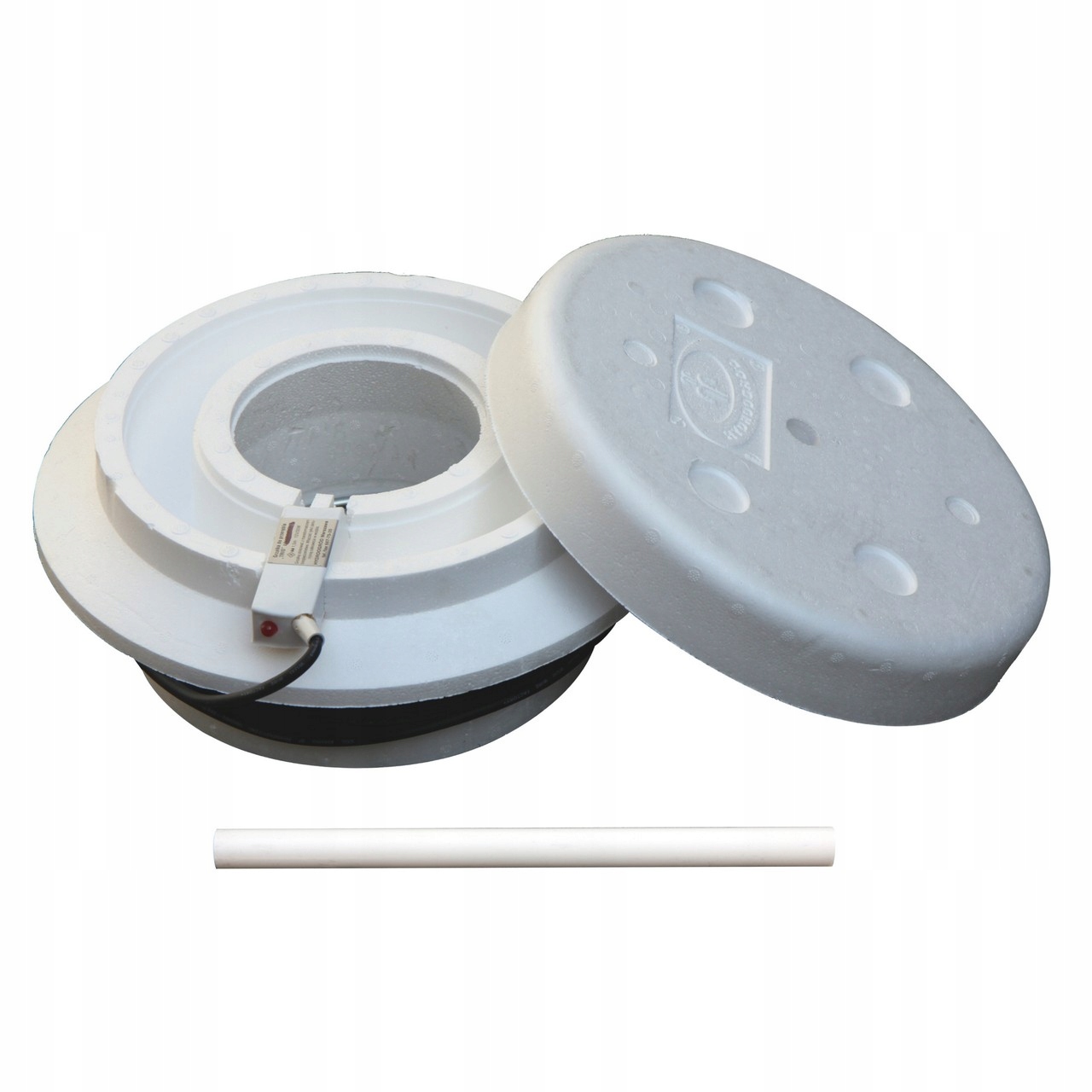 Це оснащений економним обігрівачем 35 Вт/12 В з кабелем довжиною 8 м, який при низькому енергоспоживанні ефективно захистить водойму в морози навіть до -20 °C. Для роботи потрібен трансформатор 50 Вт/12 В. Одного пінополістиролу TRIO вистачає приблизно на 15 м2 ставки.