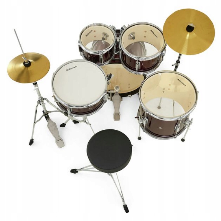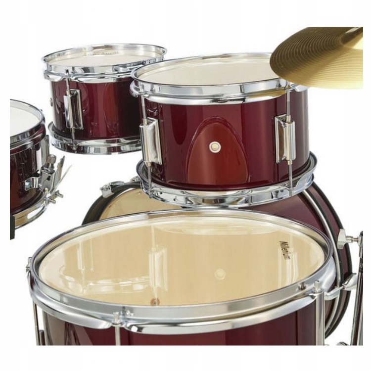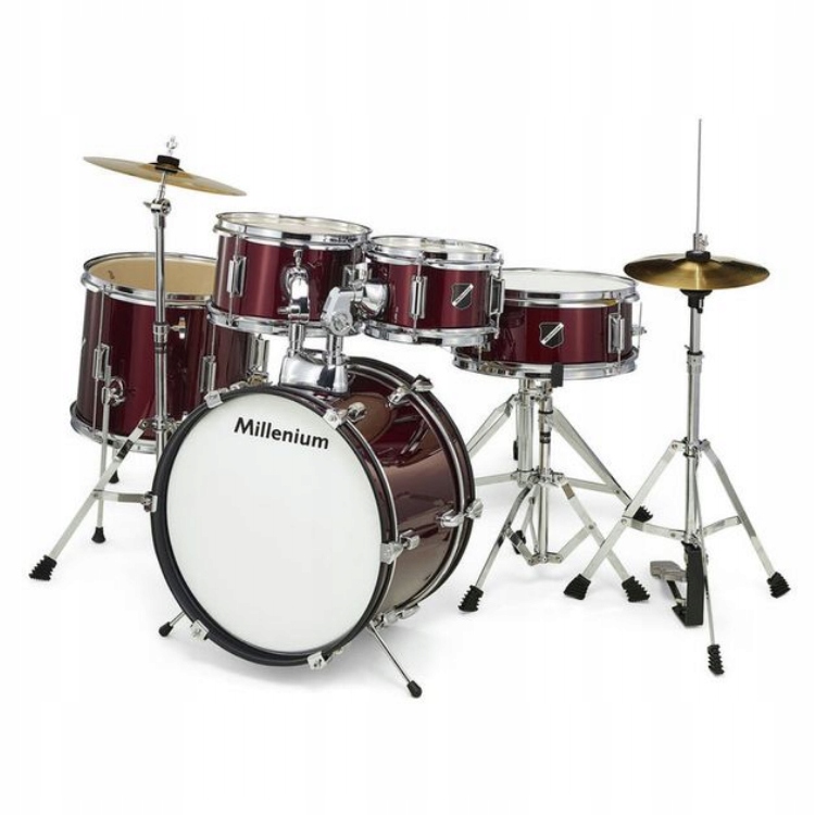 Millenium Focus Junior Drum Set - повна акустична барабанна установка для дітей віком від 4 до 7 років, призначена для навчання грі на цьому інструменті. Набір ідеально підходить для відпрацювання різних видів ритмів. Він добре працює в різних музичних жанрах. Усі барабани виготовлені з берези, яка є чудовим матеріалом для виготовлення ударних інструментів. Обручі, що утримують струни, і елементи обробки, такі як ручки і метелики, хромовані, що захищає ці елементи від іржі і гарантує довгий термін служби інструменту. Це універсальна і відносно дешева барабанна установка для дітей.