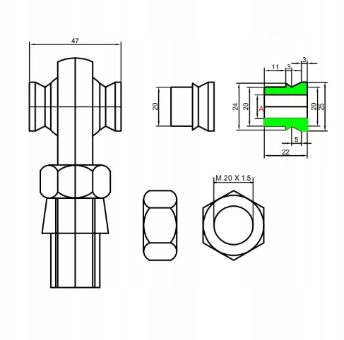 Барабанна головка - Uniball M20X1.5 Правий (чоловік) +горіх