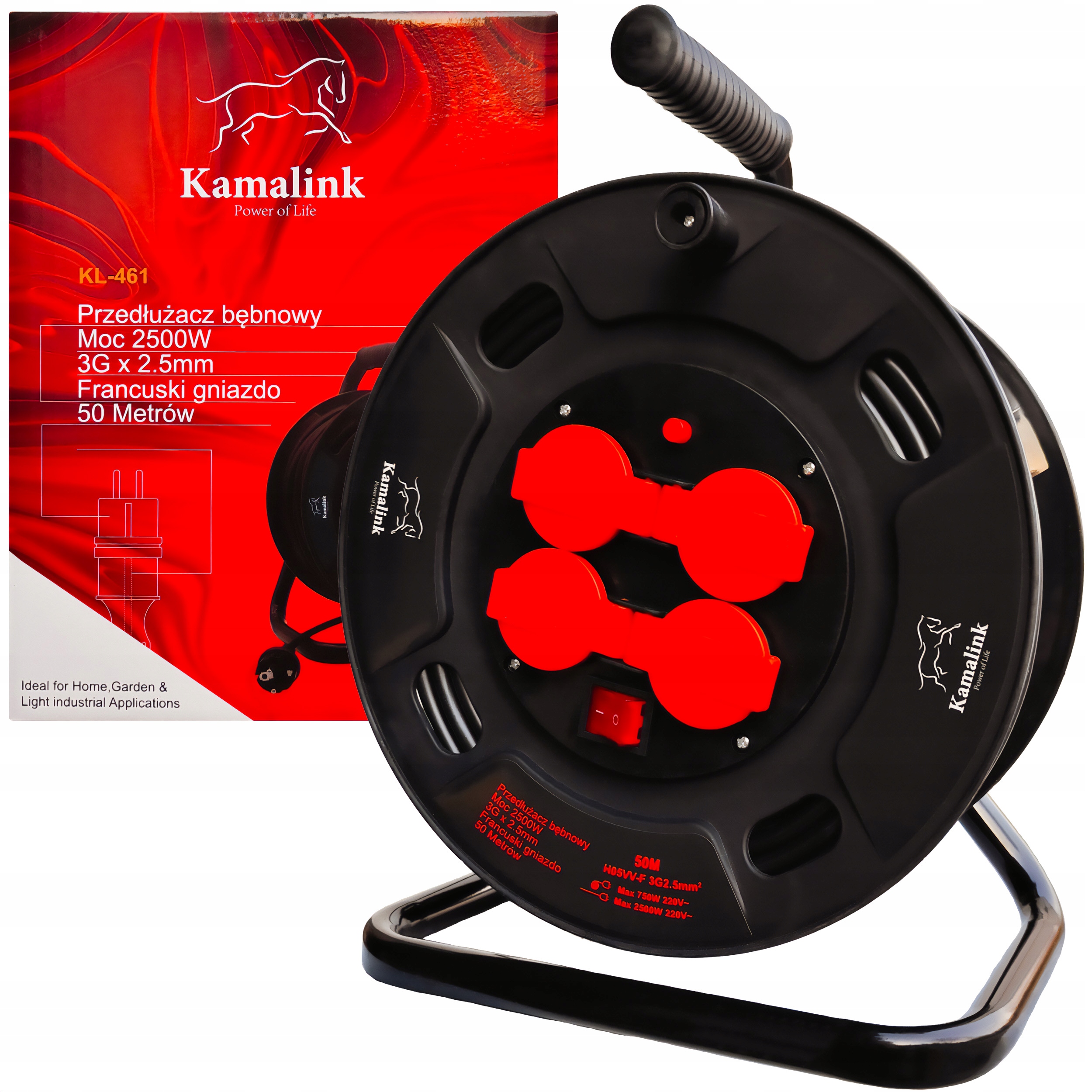 ► Металева підставка ► 50 метрів ► Перемикач ► 3x2.5 мм кабель ► Термічна захист ► Сокетки ► Набір захисту IP44