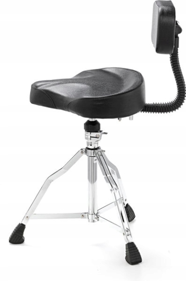 Стійкий барабанний стілець Millenium, що регулюється по висоті, зі спинкою. Надзвичайно зручний, але легкий і зручний для транспортування. Виготовлений з міцних матеріалів, він може використовуватися дуже довго. Конструкція на основі штатива забезпечує баланс. Ергономічні ручки дозволяють швидко та легко відрегулювати табурет.