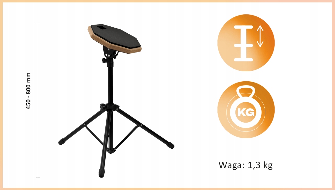 ⭐ Подушка з діаметром 8 дюймів (20 см) пропонує компактний, але реалістичний досвід під час фізичних вправ. Його товщиною 2,5 см збільшує міцність, а стабільна підставка забезпечує відмінну стабільність під час гри. Регулюючи висоту, налаштування прокладки можна легко відрегулювати, імітуючи реальне положення набору барабана.