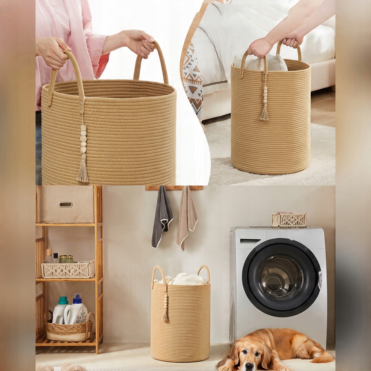 ✅ Унікальний, ручна робота: красиво заплетений кошик для білизни з бахромою та дерев’яними намистинами. Простий, але стильний дизайн прекрасно прикрасить ваш будинок. Красиво сплетений кошик для білизни з бахромою та дерев’яними намистинами. Простий, але стильний дизайн прекрасно прикрасить ваш будинок.
