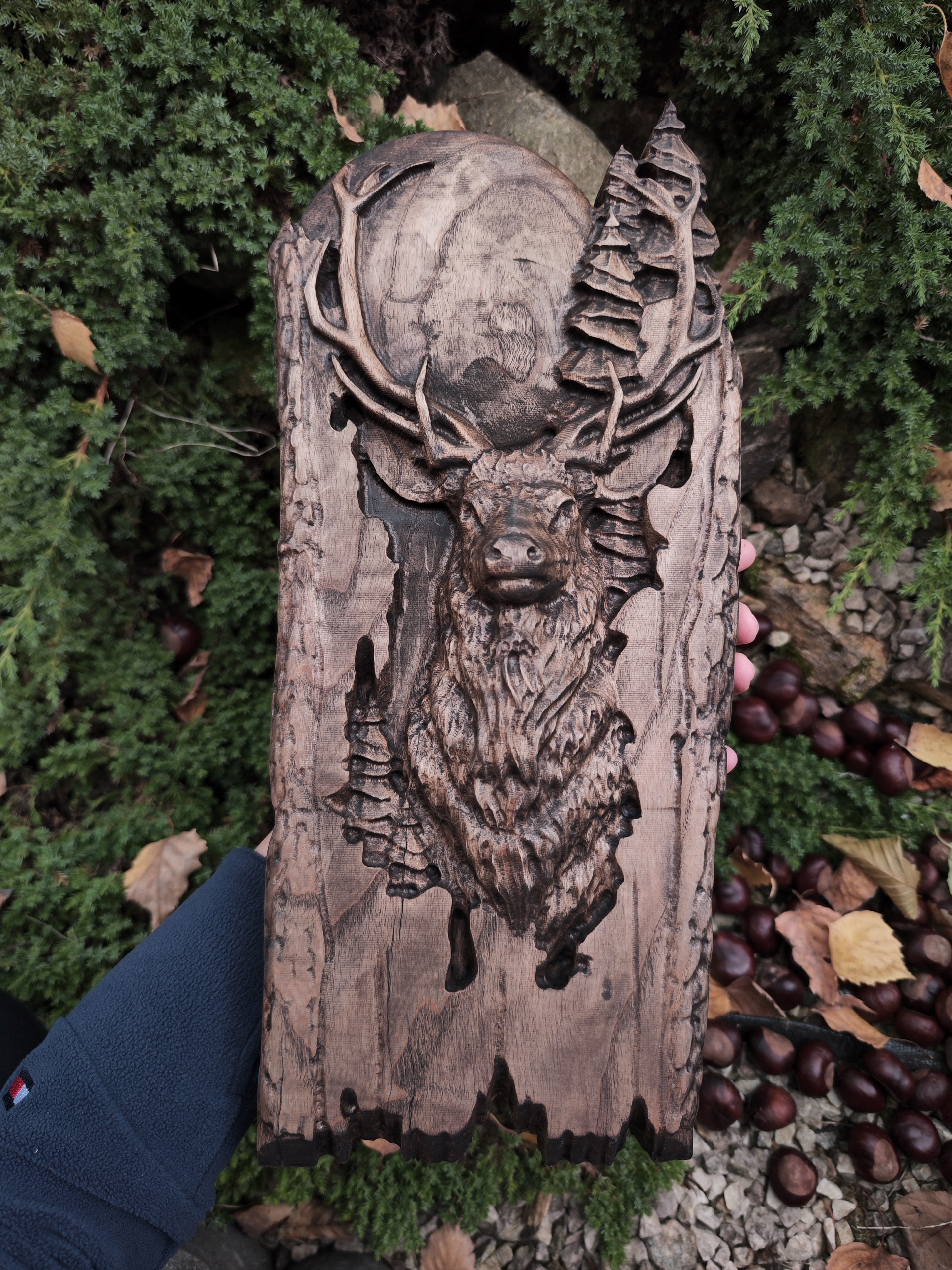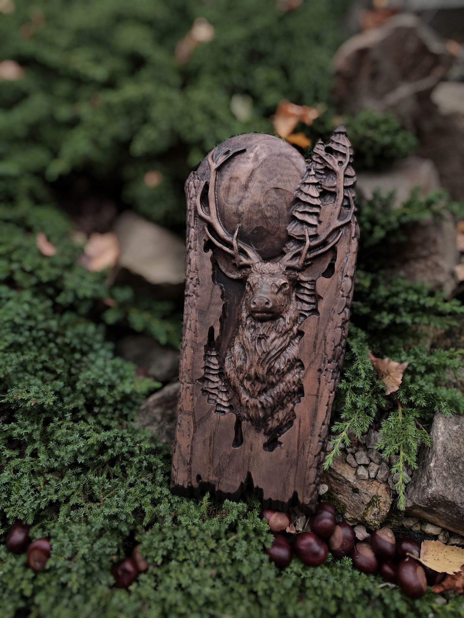 Барельєф ОЛЕНЬ ліс подарунок для мисливця дерев'яна картина свята 50 см