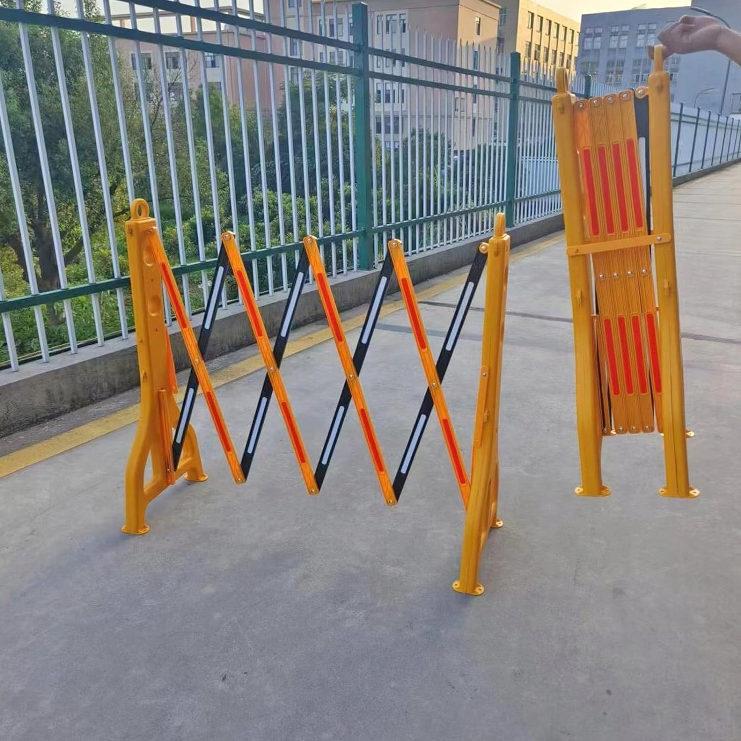 Жовто-чорний бар'єр-гармошка призначений для перегородження або відгородження простору.