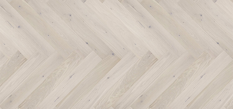 Дубова підлога перлинно-білого кольору . Дошки були брашовані, що підкреслило природну структуру деревини, а 4-стороння мікрофібра підкреслила її стрункість і легкість. Покрита ледь помітним матовим лаком.