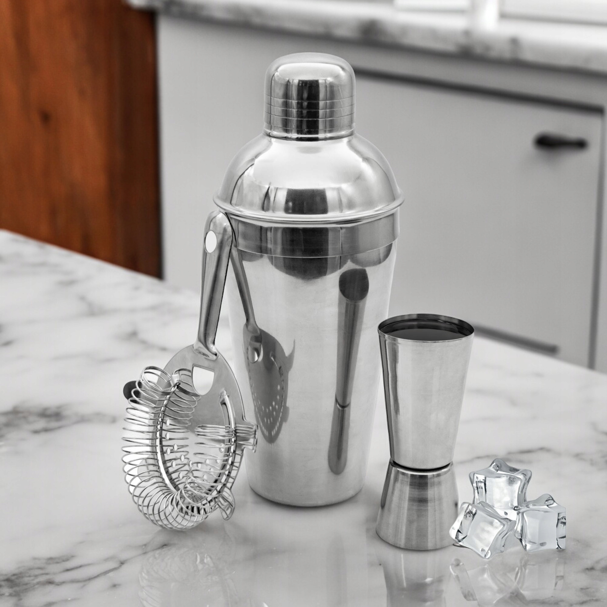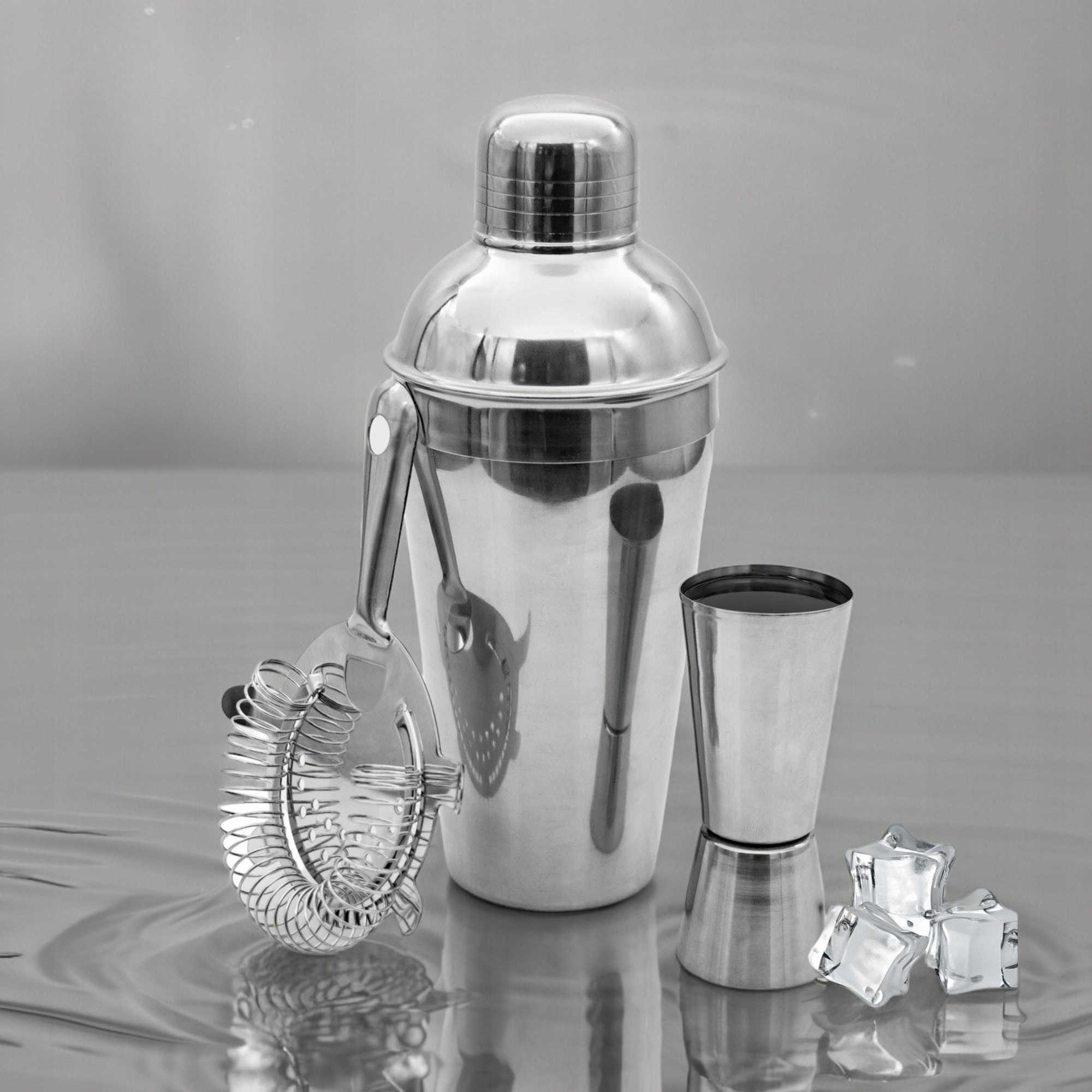 Барменський набір, виготовлений з високоякісної нержавіючої сталі. Не містить шкідливих речовин і не змінює смак приготованих напоїв. У набір входить шейкер, двовимірний барменський мірний стакан і барменське ситечко. Весь набір ідеально підходить для вечірок, а також як ідея подарунка. Таким набором ви здивуєте всіх своїх гостей і вечірка стане незабутньою та неповторною.