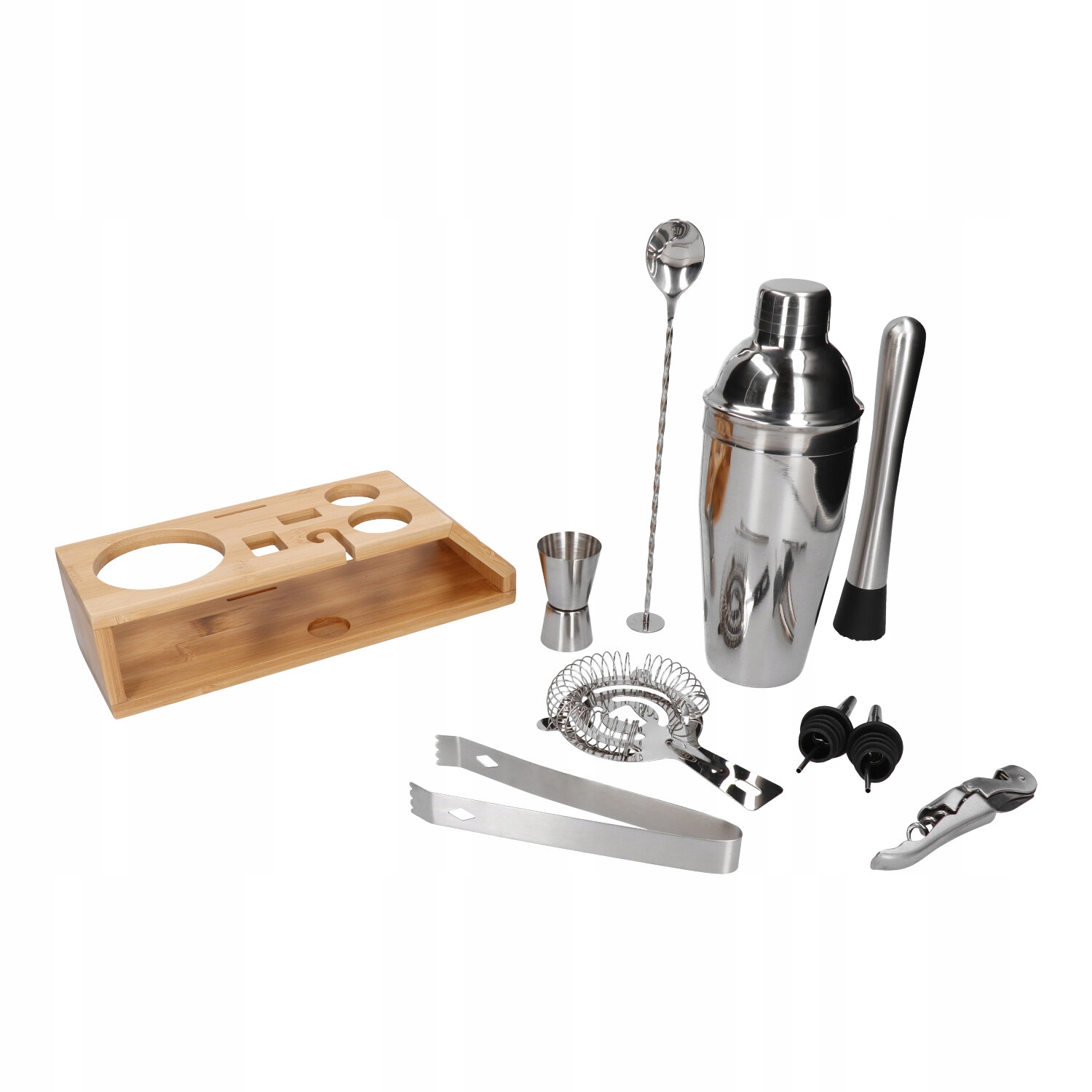 Барменський набір із 10 предметів зі срібною підставкою для шейкера