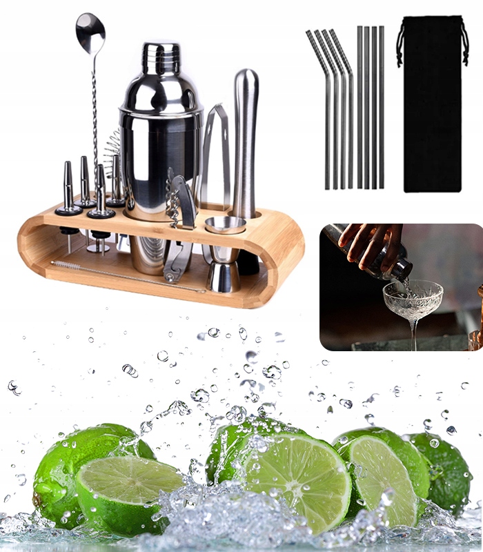 Представлений набір барменів складається з 23 елементів , з яких можна приготувати незвичні та барвисті напої. Усі деталі виготовлені з нержавіючої сталі з високою якістю та незвичною стійкістю до різних рідин, які будуть в ній. Завдяки великому розміру, барменський набір забезпечує всі необхідні інструменти для легкого та точного створення улюблених коктейлів.