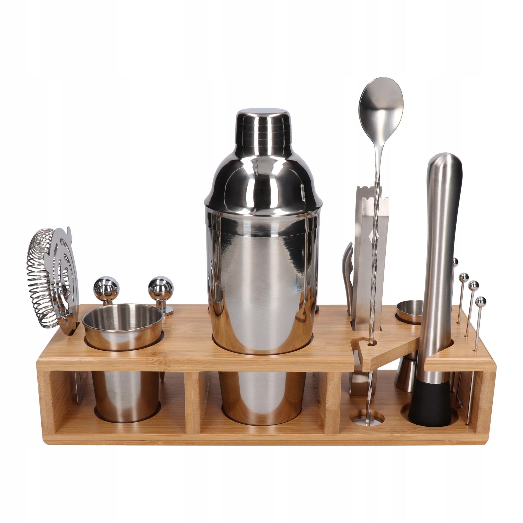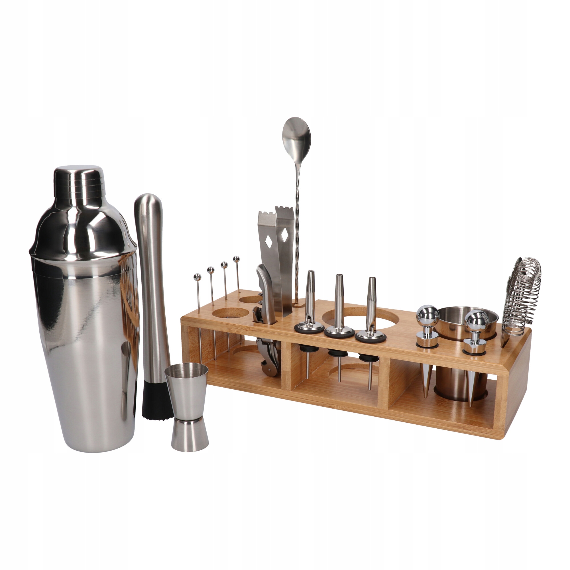 Барменський набір з 20 предметів зі срібною підставкою для шейкера