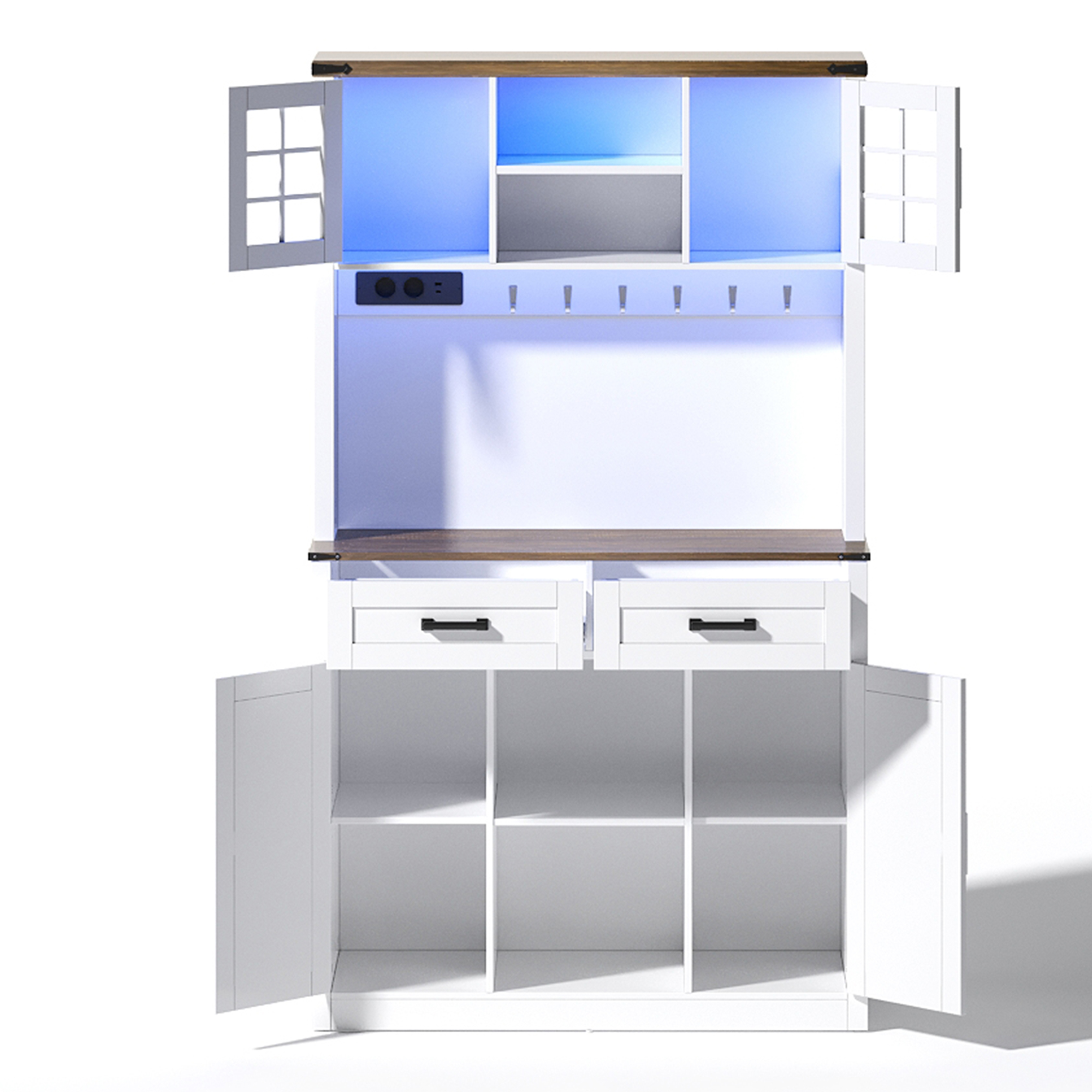Барна шафа зі світлодіодним підсвічуванням і розетками, велика кухонна шафа-буфет з 2 великими ящиками, дизайн дверей для сараю, регульовані полиці, столик-буфет у рустикальному стилі, білий