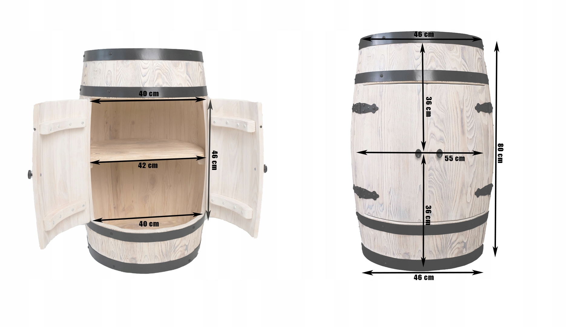 • Ободи та фітинги: Вся конструкція посилена міцними сталевими ободами, покритими порошковою фарбою елегантного кольору. чорний матовий Ідеально підігнані двері встановлені на міцні чорні петлі та оснащені стильною ручкою.