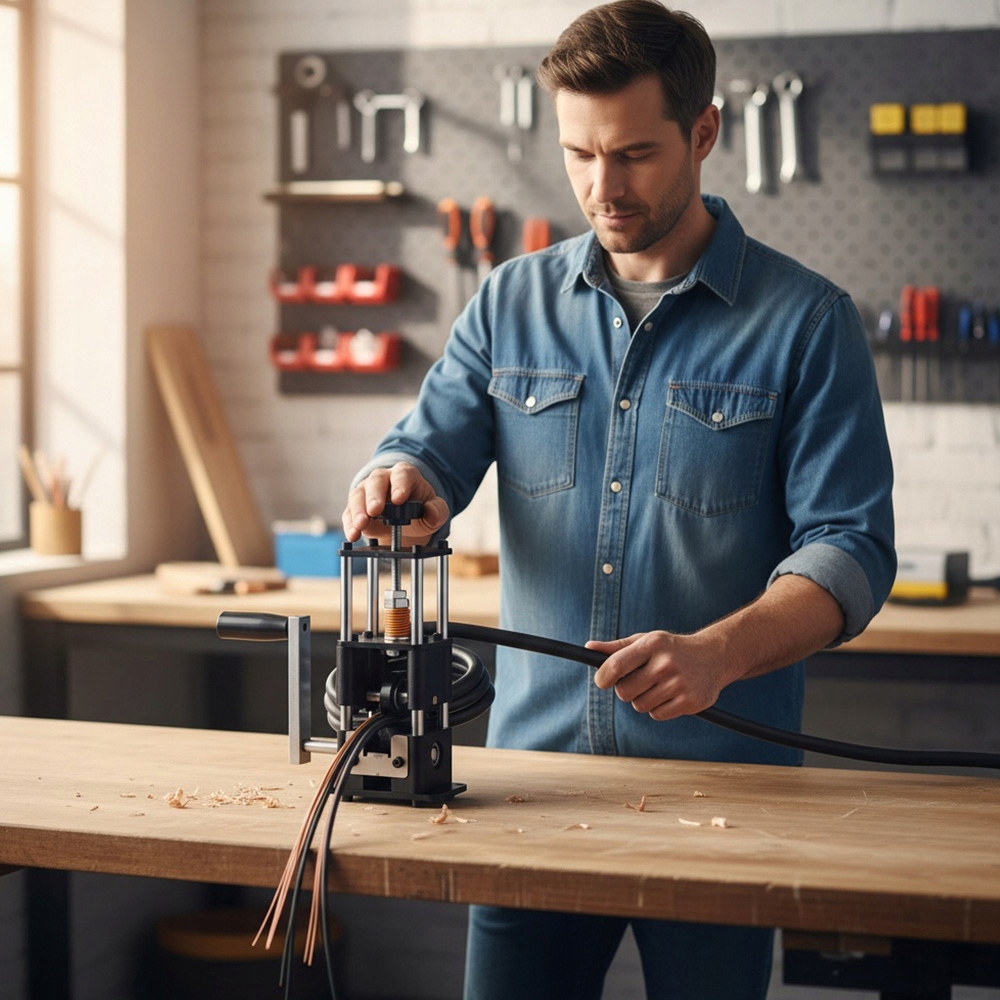 ✅Оснащений регульованою пружиною, він дозволяє точно регулювати висоту леза залежно від ваших потреб. Просто протягніть кабель через відповідний отвір і поверніть рукоятку, щоб легко зняти ізоляцію.