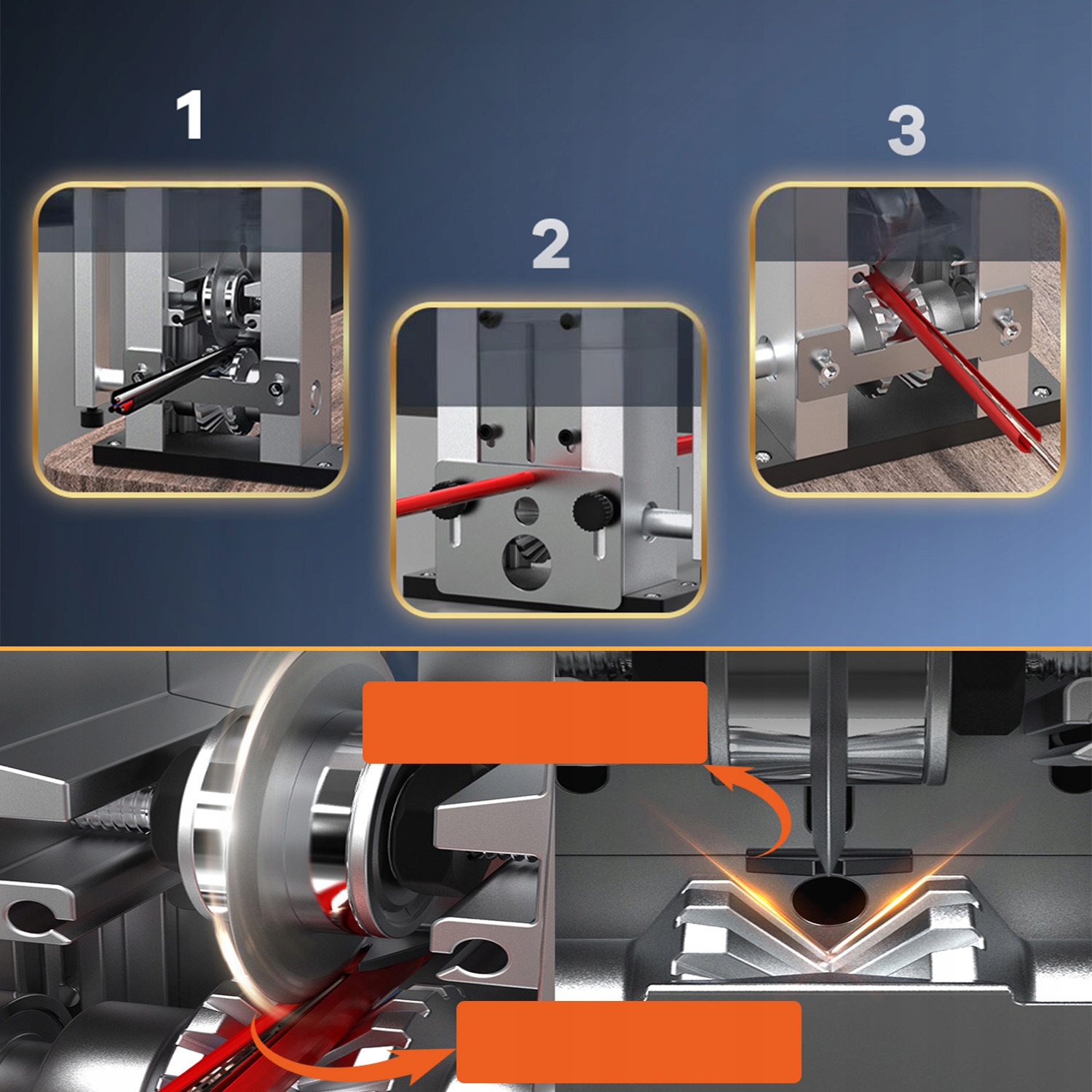 ✔️ Просте управління та можливість автоматизації:Оснащений рукояткою, що дозволяє вручну знімати ізоляцію, а також легким➛підключенням викрутки для автоматизованої роботи.