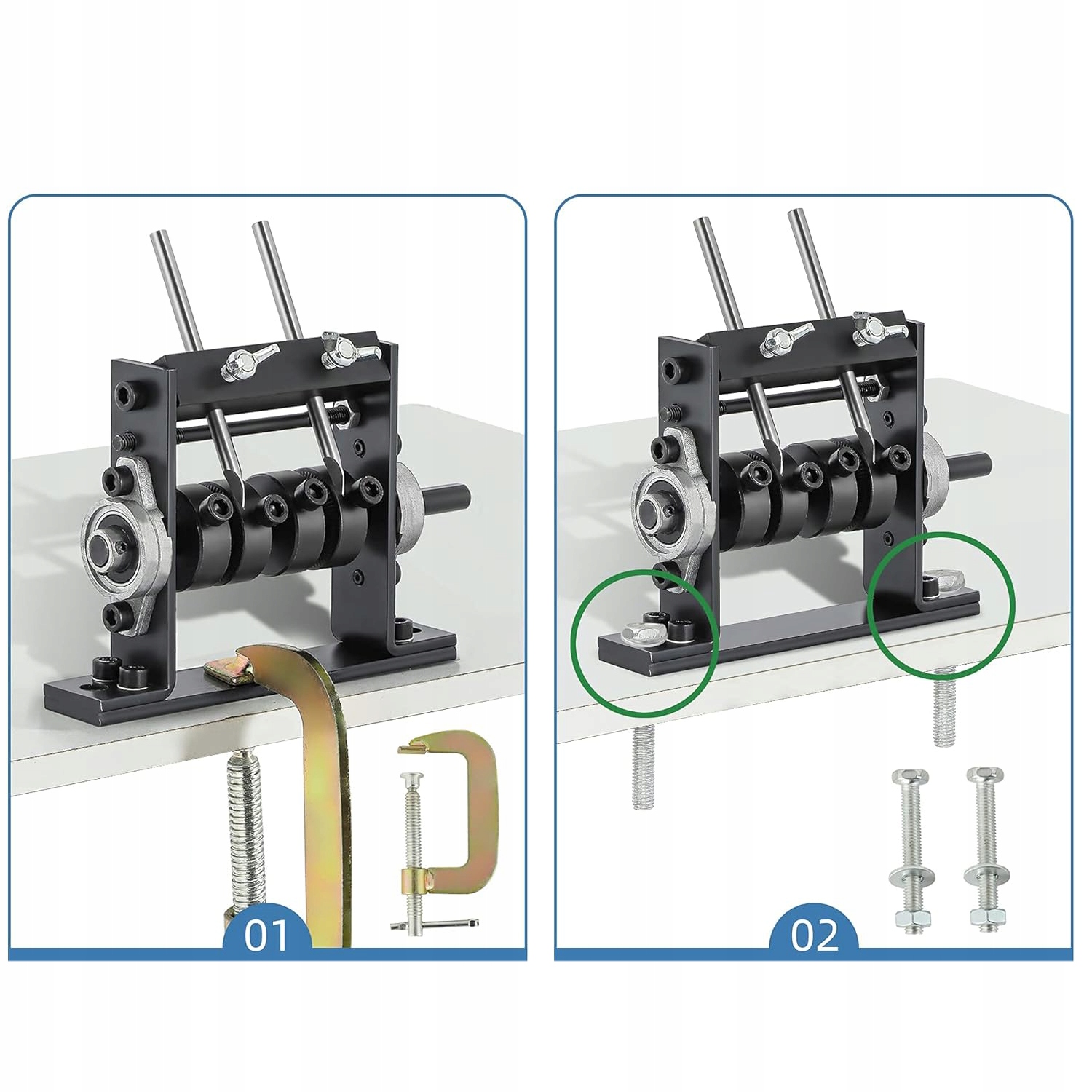 - ✅ 【Методи встановлення】: Є 2 способи встановлення: ви можете просвердлити невеликі отвори на робочому столі, закріпити машину гвинтами (в комплекті) або затиснути машину за допомогою G-затискачів (в комплекті).