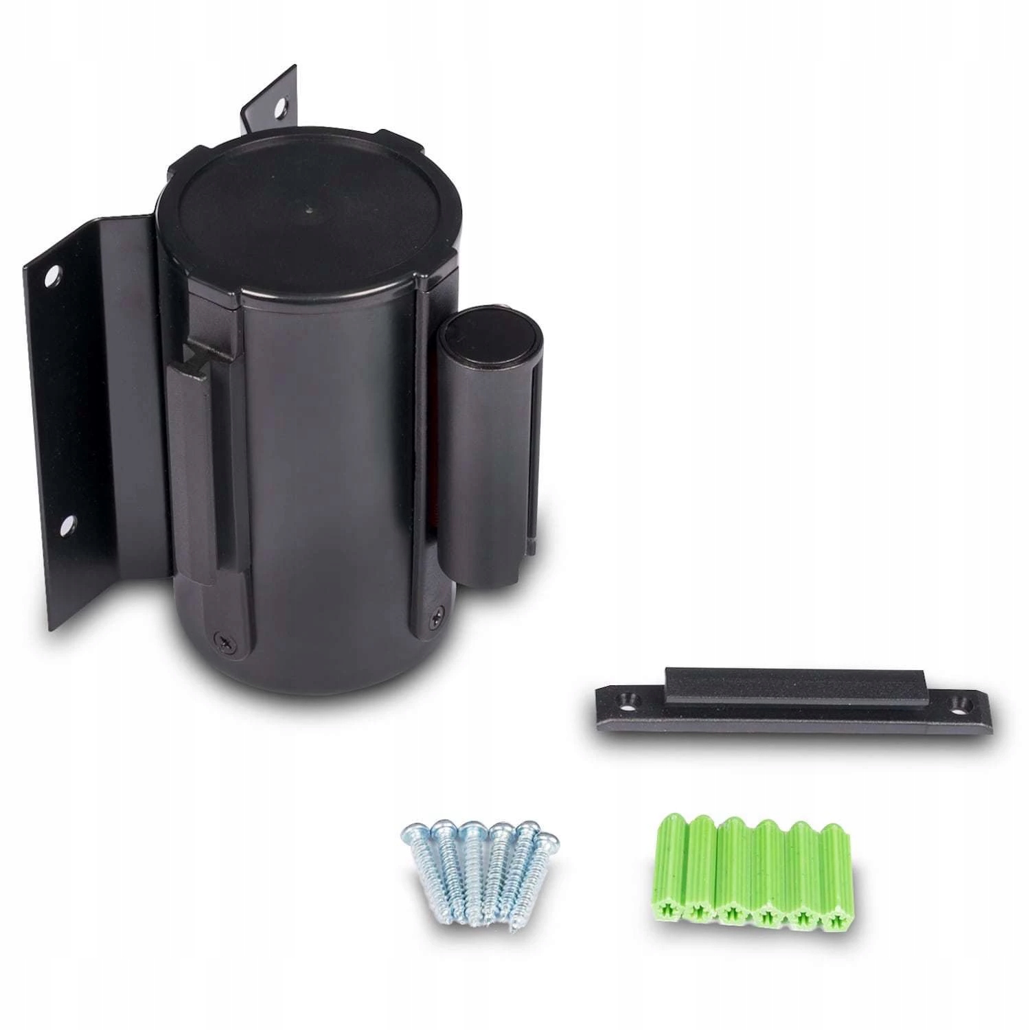 Настінна головка для блокування проходу червоною бар'єрною стрічкою. Корисно для поділу зон безпеки, місць, куди вхід заборонений або дозволений лише уповноваженим особам. Це корисно в місцях, де не можна встановити шлагбауми. Стрічку можна замінити на інші кольори, придбавши змінні головки в нашому магазині.