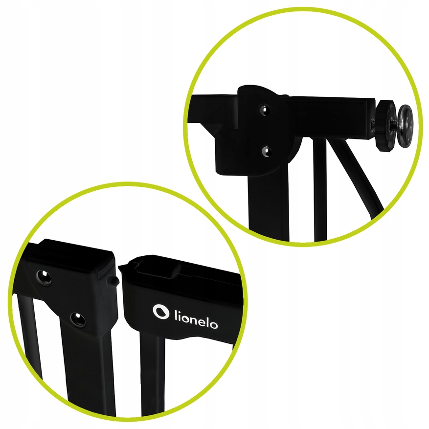 Збірка воріт із гвинтами гарантує повну стабільність продукту. Ви можете бути впевнені, що малюк не буде демонтувати бар'єр. Спеціальна накладка дозволяє розширити бар'єр до 105 см. Після додавання додаткового розширення ворота також можна використовувати для захисту сходів.