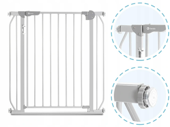 Збірка воріт із гвинтами гарантує повну стабільність продукту. Ви можете бути впевнені, що малюк не буде демонтувати бар'єр. Спеціальна накладка дозволяє розширити бар'єр до 105 см. Після додавання додаткового розширення ворота також можна використовувати для захисту сходів.
