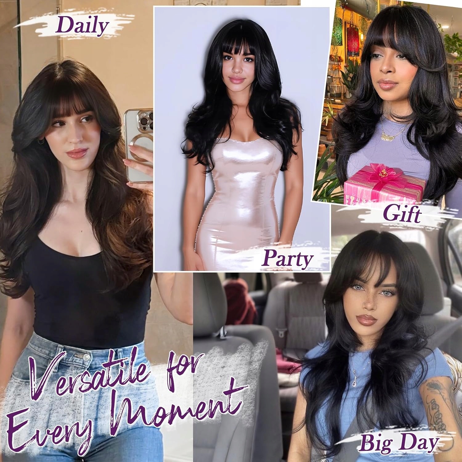 BARSDAR Довга натуральна чорна перука з чубчиком 50 см багатошарова перука