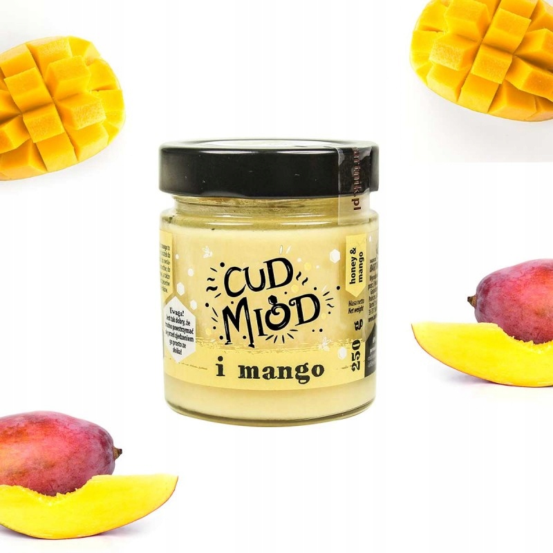 Смачний багатоцвітовий мед з манго - створений, в тому числі, як альтернатива кремам для сніданку, але не містить жодних сторонніх інгредієнтів, речовин або підсилювачів смаку.