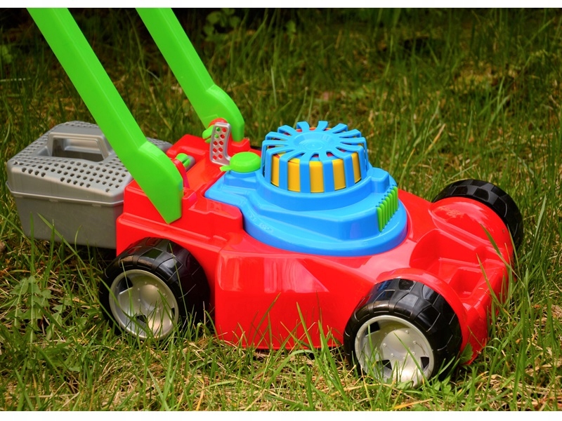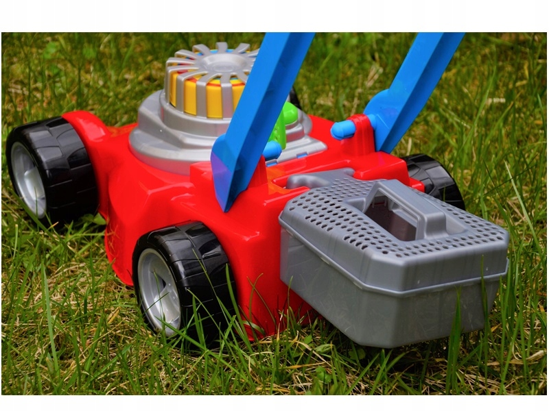 Велика газонокосарка - дитяча, легка, зі складною ручкою і травозбірником. Відмінна якість як виготовлення, так і матеріалів, використаних у виробництві