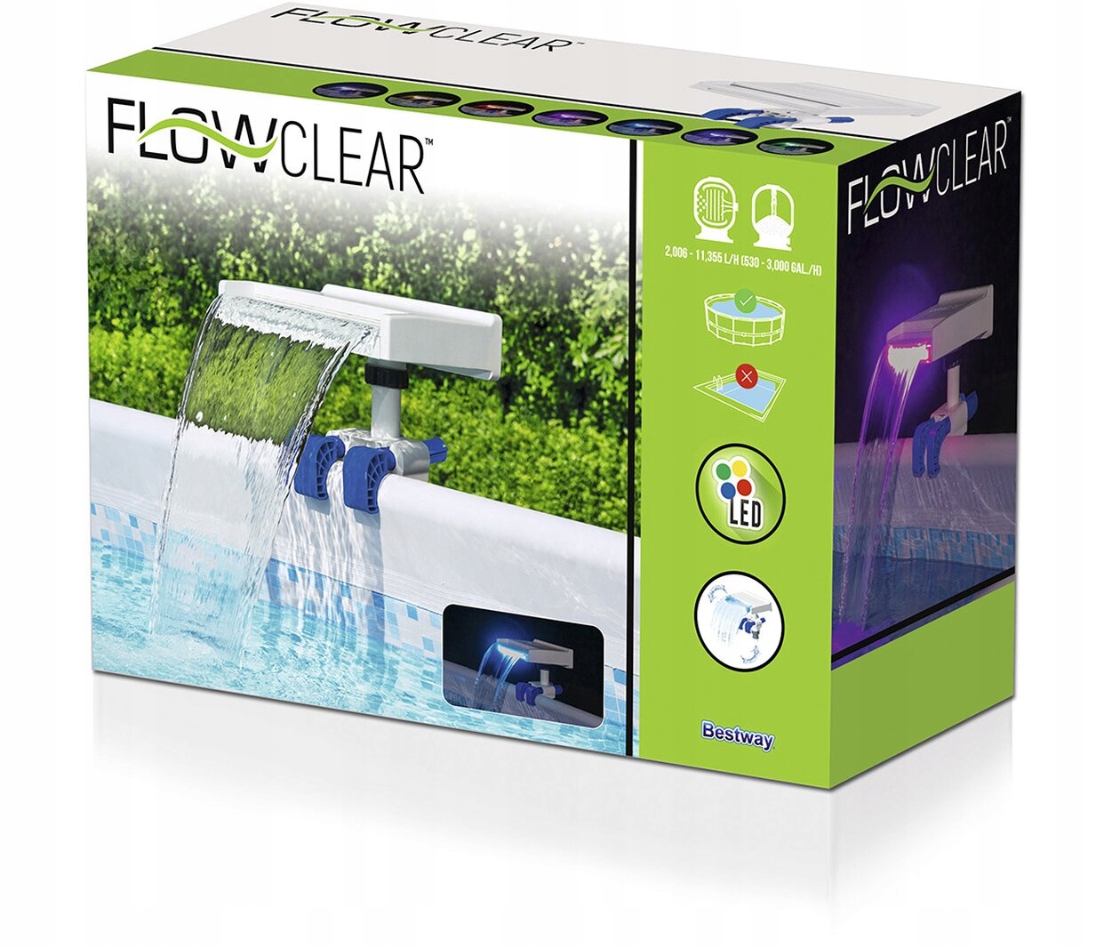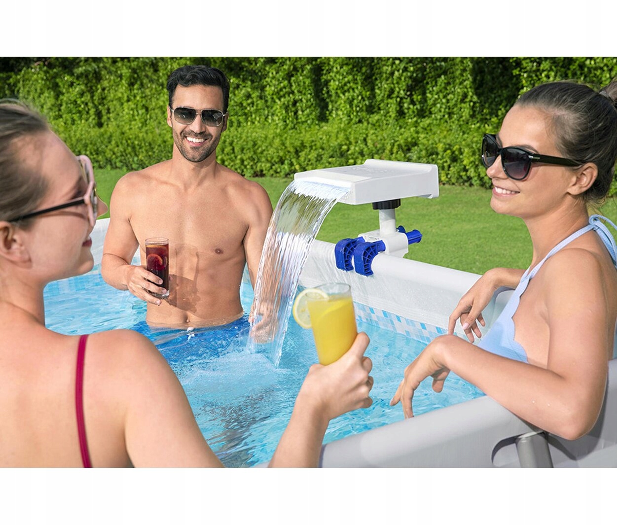 Плавання у приватному басейні — це велике задоволення, яким ви можете насолоджуватися в комфорті власного саду. Компанія BESTWAY також подбала про те, щоб ваше купання було не тільки приємним, але й неповторним як вдень, так і вночі. Усе це завдяки цьому фонтану, що б’є різнокольоровою водою, і світлодіодному водоспаду, який створить потрібний настрій і додасть відчуття розкоші будь-якому басейну. Насолоджуйтеся шумом водоспаду та різнокольоровими світловими променями, що проникають у водоспад, купаючись уночі з родиною та друзями.