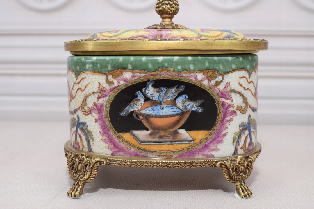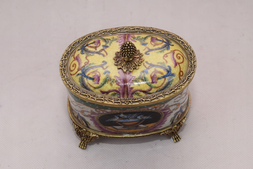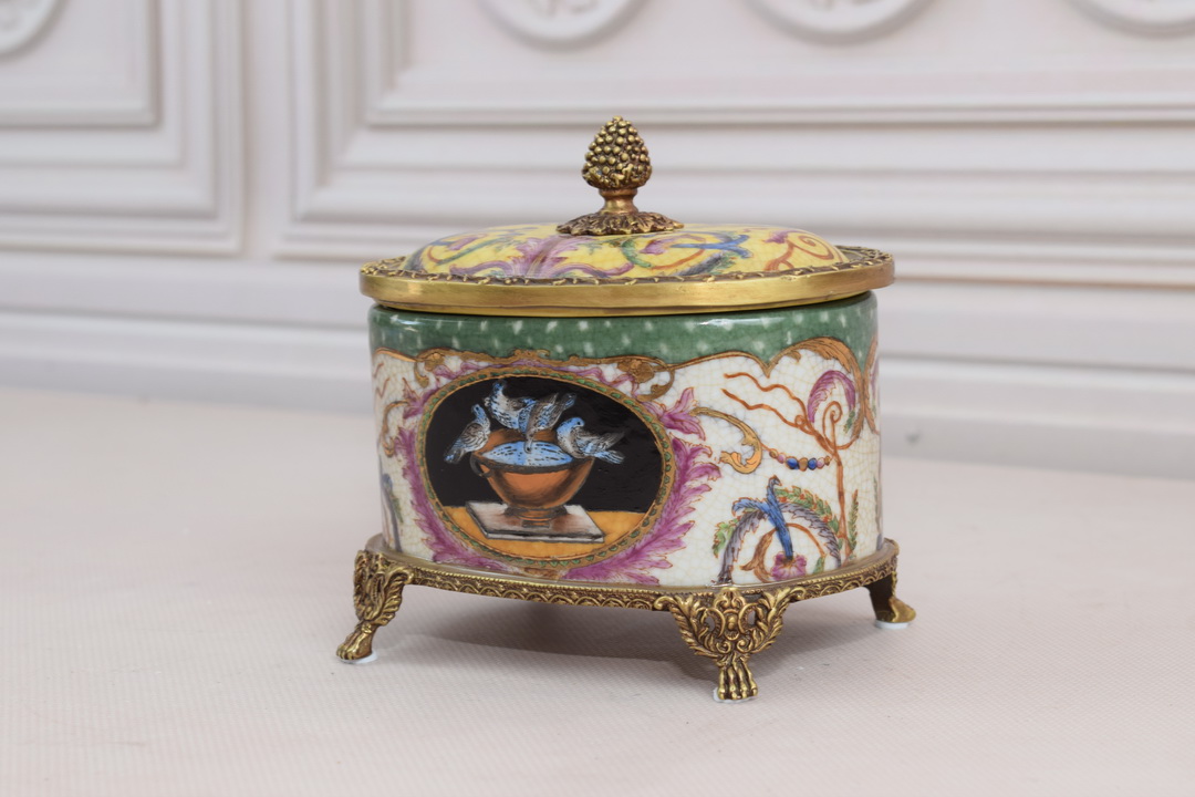 Барвиста коробка бомбоньєра - порцеляна + бронза - прикраса