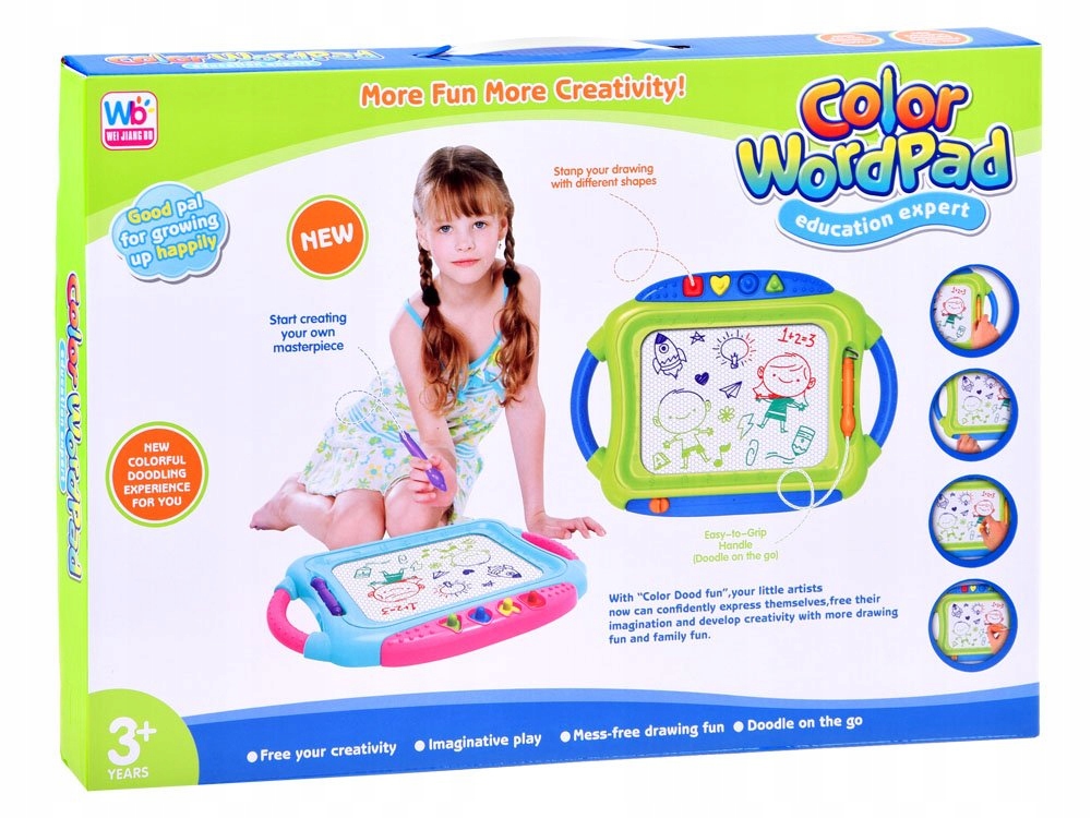 - Зникнення - це пропозиція для кожної дитини, яка любить малювати, малювати, писати. Чотири -забарвлений літак дозволить вам створити мультизореровані малюнки. На дошці є великий розмір, завдяки якому дитина матиме місце, щоб показатись. Таблиця мультизорійна під час малювання змінюється залежно від місця письма чи малювання. Штампи також використовуються для фарбування. Якщо малюнок нудьгує дитиною або не подобається, ви можете просто стерти його за допомогою розсувного маркера. Гра з зникненням буде чудовим рішенням для нудних вечорів. На дошці можна малювати, писати зі стилусом або шаблонами штампів з марками. Штампи у формі геометричних фігур дозволять зробити малюнки більш привабливими. Творчість та винахідливість дозволять вам створити різні форми та персонажі.