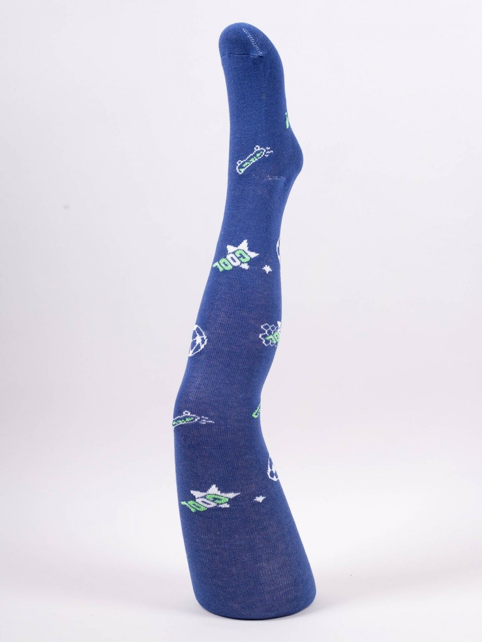 бавовна, покриваючи колготки для хлопчика. у приглушених кольорах, з життєрадісними мотивами на ногах . Пошиває м'яку і довговічну бавовну, яка гарантує чудовий комфорт. Вони чудово підходять для особливих випадків і для повсякденного використання. Дитина