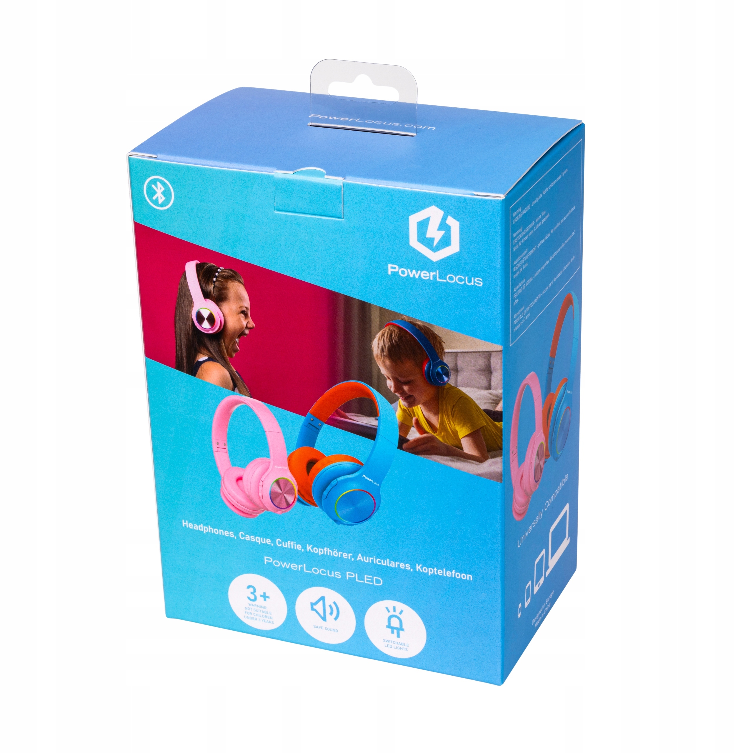 Барвисті бездротові Bluetooth-навушники PowerLocus PLED ДЛЯ ДІТЕЙ зі світлодіодом