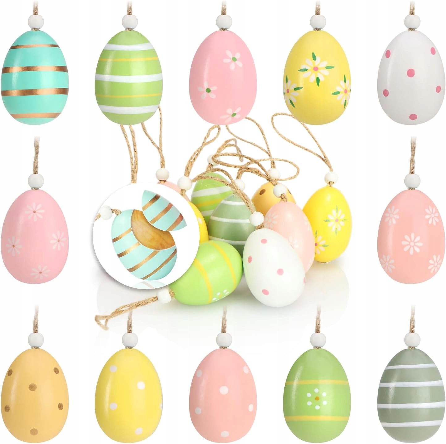 Створіть унікальну атмосферу великодніх свят завдяки нашому набору 12 дерев'яних писанок. Кожне пасхальне яйце було ретельно прикрашене красивими візерунками та оснащена практичною струною, щоб повісити. Ідеально підходить для прикраси великоднього столу, гілочок у вазі, а також для прикраси саду чи балкона.