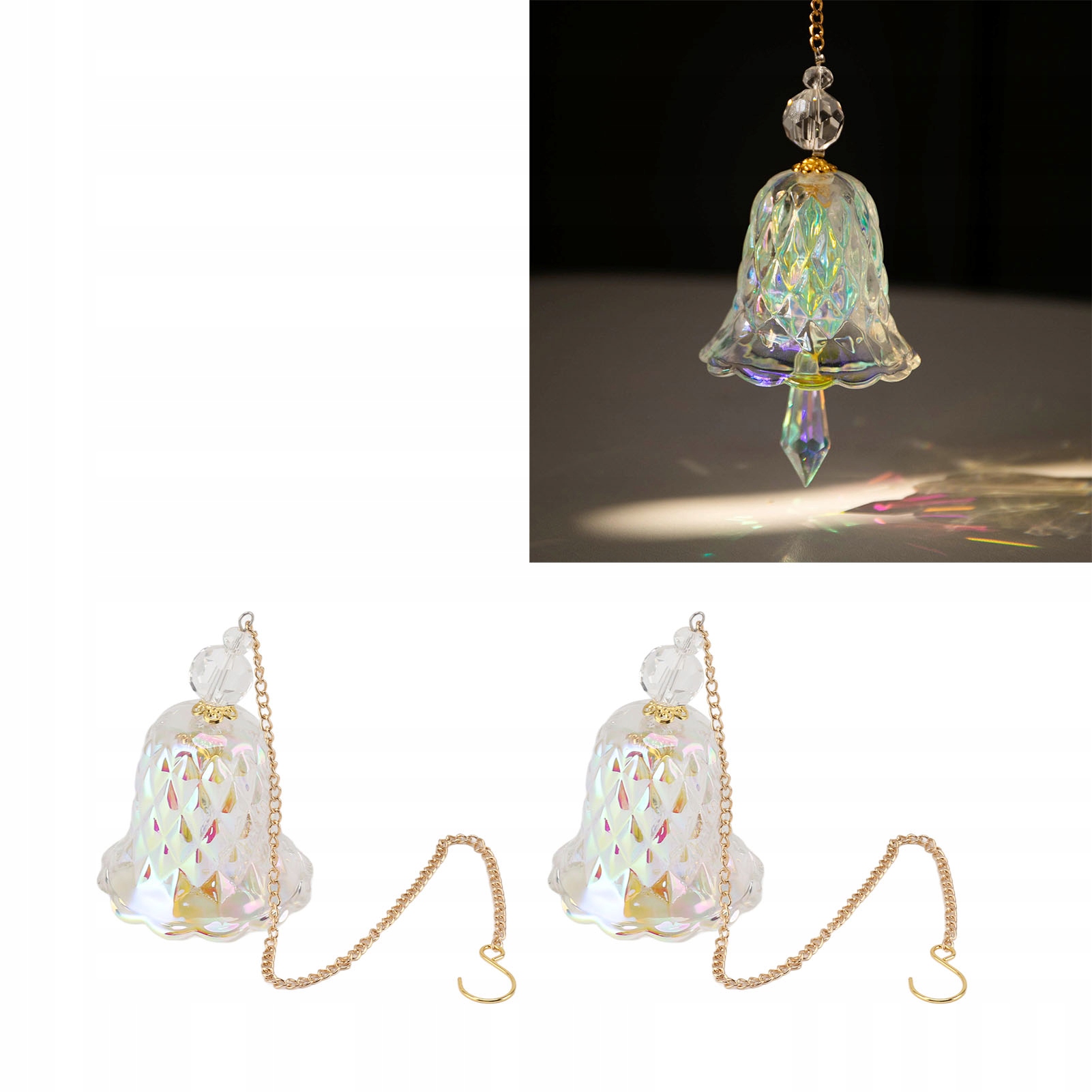3. Форма дзвоника: Призми дзвоника створюють чистий і мелодійний звук при дотику, що робить його ідеальним для декоративних цілей, таких як люстри, садові проекти, дитячі кімнати, різдвяні ялинки, штори, вікна та рослини.